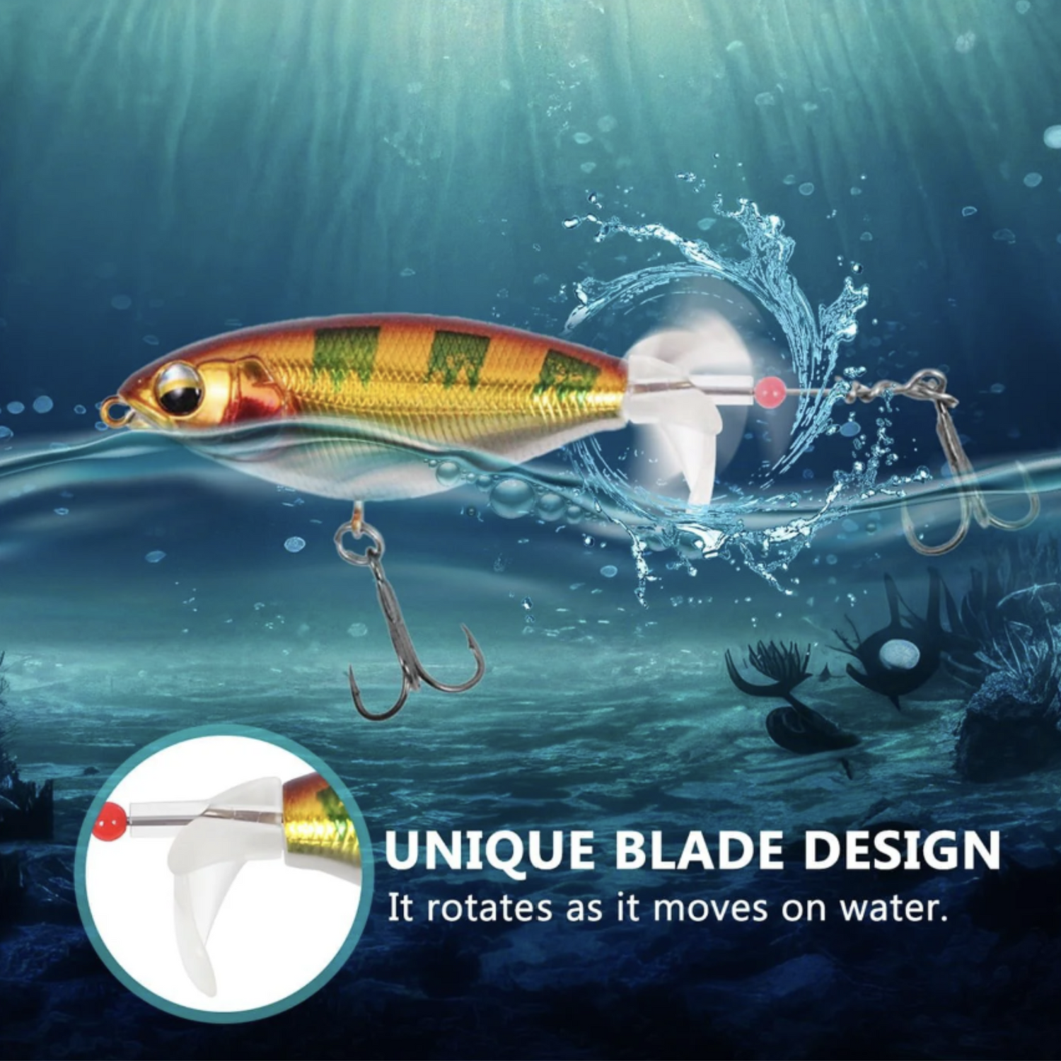 The lures are real, usable fishing gear — not toys. Each one is carefully selected to be functional on the water.