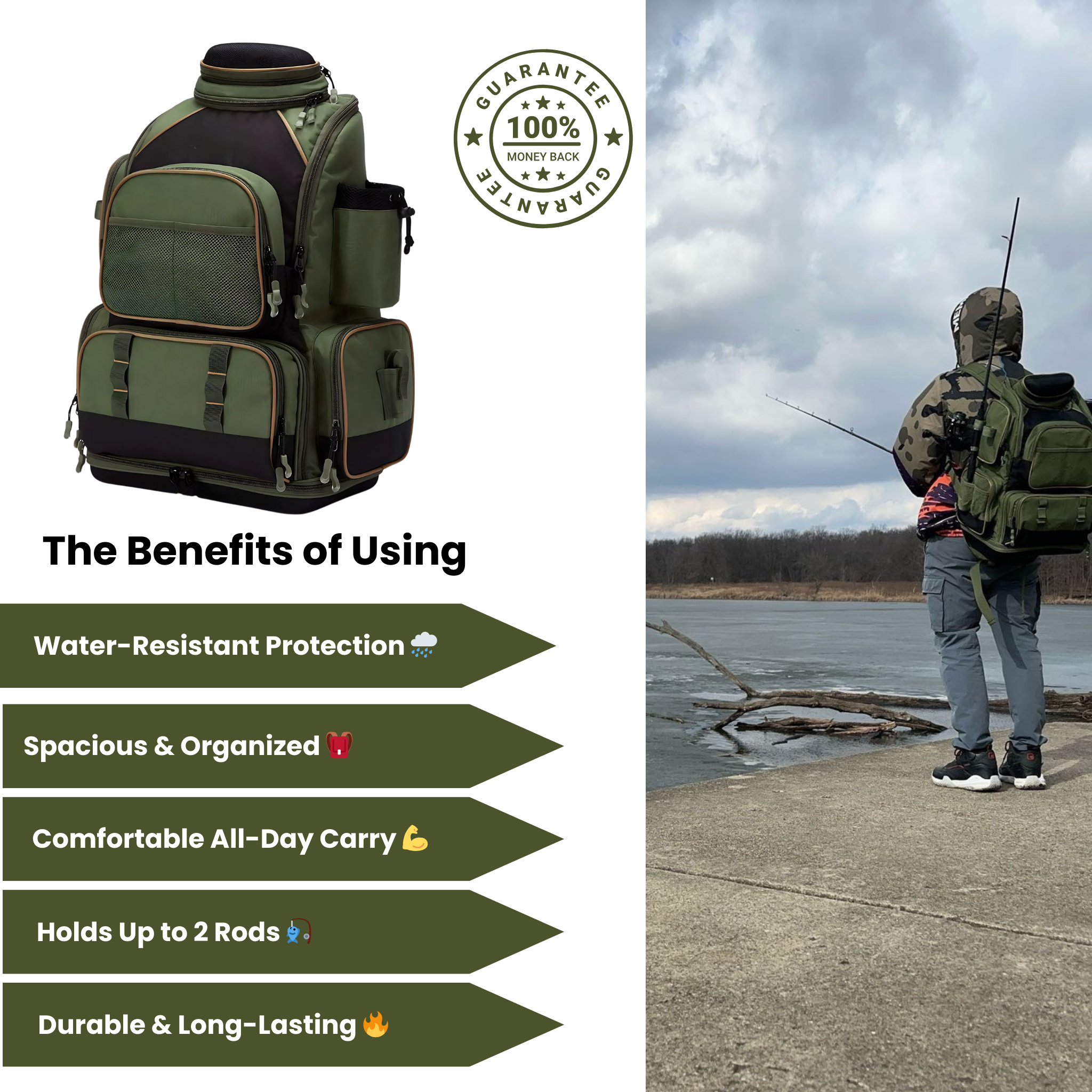 Fits tackle boxes, reels, and other essentials |